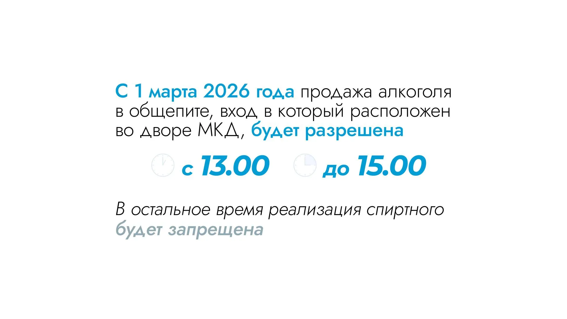 И, наконец, мы приняли закон, согласно которому время продажи алкоголя в заведениях общепита, расположенных в МКД с входом со стороны двора, будет ограничено всего двумя часами в день — с 13:00 до 15:00. Этот закон вступит в силу с 1 марта 2026 года. Мы начали получать тревожные сигналы, что освободившиеся после закрытия магазинов помещения могут занять псевдокафе. Поэтому мы пошли на опережение, и чтобы пресечь появление таких заведений, установили ограничения и для общепита.