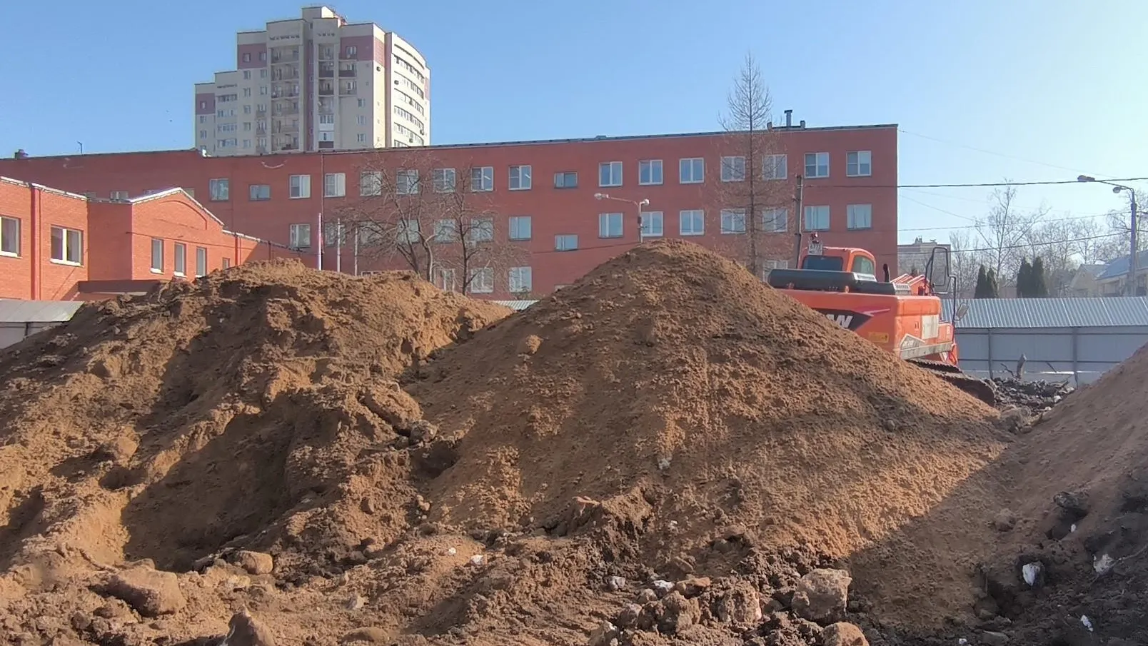 Подрядная организация вышла на площадку и начала устройство котлована будущего здания. Одновременно рабочие обустраивают подъездные пути и устанавливают ограждение по периметру стройплощадки. Работы ведутся по госпрограмме Московской области за счет бюджетных средств.