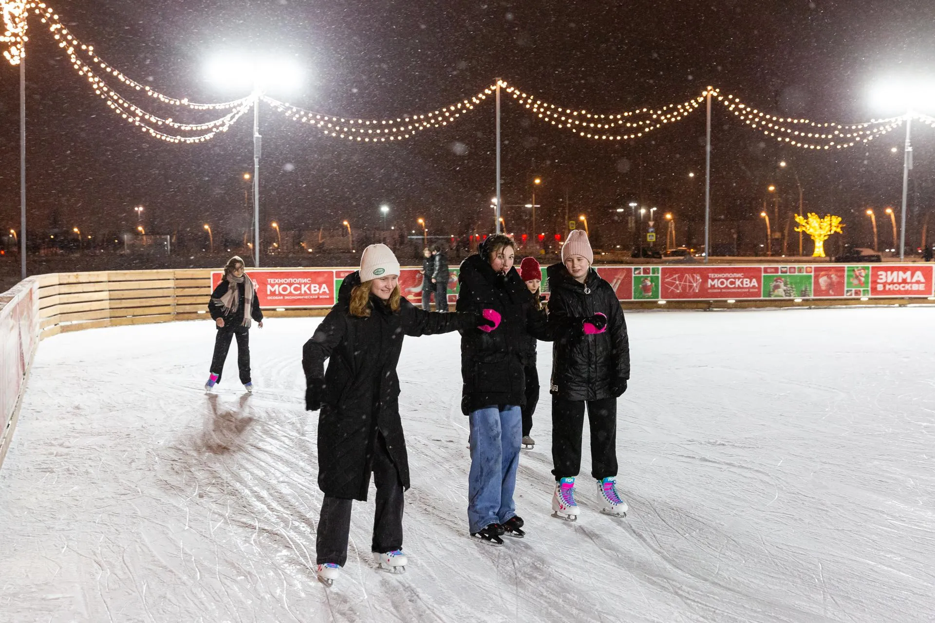 Катки открыты каждый день: в «Печатниках» — с 11:00 до 23:00, а в индустриальном парке «Руднево» — с 10:00 до 22:00. Гостям доступна аренда коньков и специальных поддерживающих устройств для детей, а также услуги по заточке инвентаря. Рядом с катками организована работа фудтраков, где можно купить горячие напитки и еду.