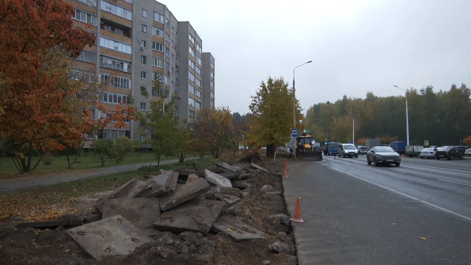 Сейчас техника расчищает территорию, удаляет плиты, которые служили временной площадкой для ожидающих автобуса. Здесь также — действующая остановка общественного транспорта. Работы идут довольно быстро. Основные задачи подрядчик планирует решить за 10 дней. К делу подошли комплексно. Запланировано организовать парковку на 23 автомашины и полноценную автобусную остановку с заездным карманом, павильоном и урнами.