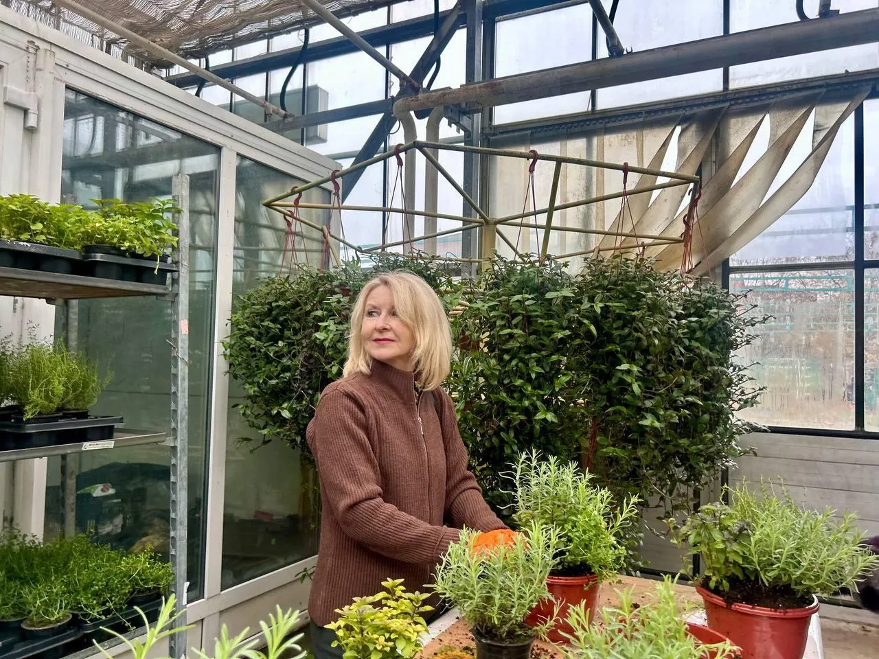 Под руководством специалистов комбината женщины освоили пересадку популярных кулинарных трав — тимьяна, розмарина, мяты и лаванды. Всего в «Тепличном комбинате» выращиваются более 5000 видов растений.