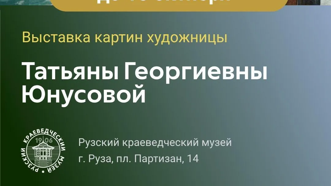 Рузский краеведческий музей приглашает всех любителей искусства на выставку картин Татьяны Георгиевны Юнусовой. Экспозиция представляет собой уникальное собрание работ талантливой художницы, чья творческая судьба заслуживает особого внимания, сообщила пресс-служба администрации городского округа.