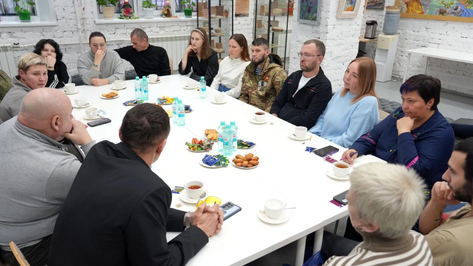 За чаепитием бойцы обсудили накопившиеся проблемы: региональные компенсации за тяжелые ранения, газификацию частного сектора, списание кредитных и налоговых задолженностей, включая долги по индивидуальному предпринимательству.