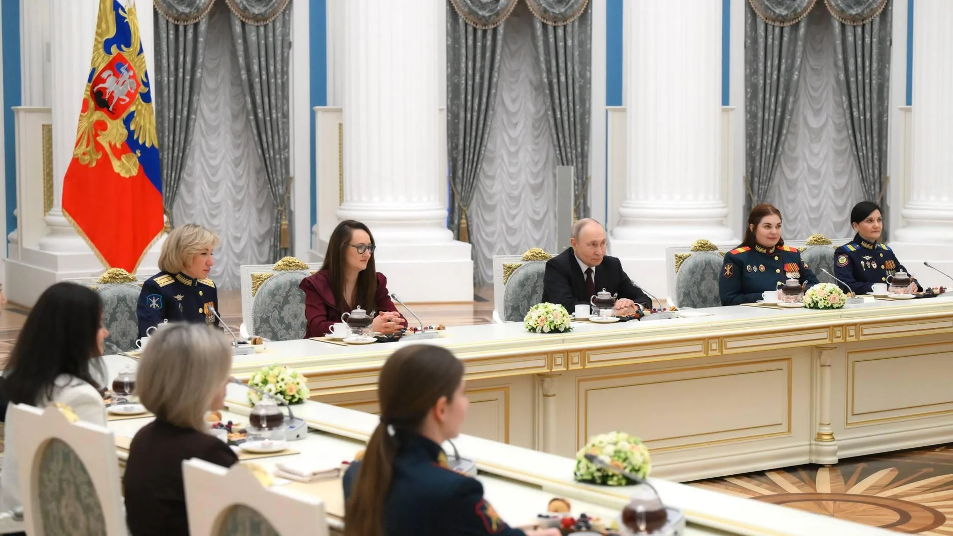 «Я рассказывала Владимиру Владимировичу о работе над „Русским ренессансом“, над „Женщинами-героями“ и подарила ему хлопушку проекта „Женщины-герои“, на которой расписались все женщины, которые были за столом», — поделилась выпускница «Мастерской новых медиа» Президентской платформы «Россия — страна возможностей» Мария Андреева.