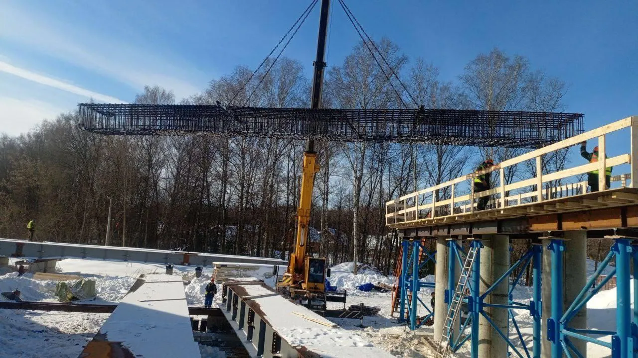 В Серпухове монтируют балки путепровода у деревни Лукино