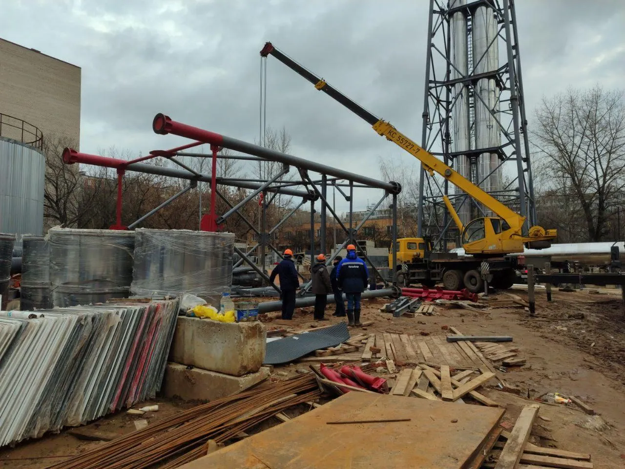 Сейчас на земле строители возводят еще три секции, которые затем поднимут при помощи большого крана и закрепят на проектной отметке. Новая дымовая труба позволит обеспечить более эффективную работу котлов и минимизировать негативное воздействие на окружающую среду.