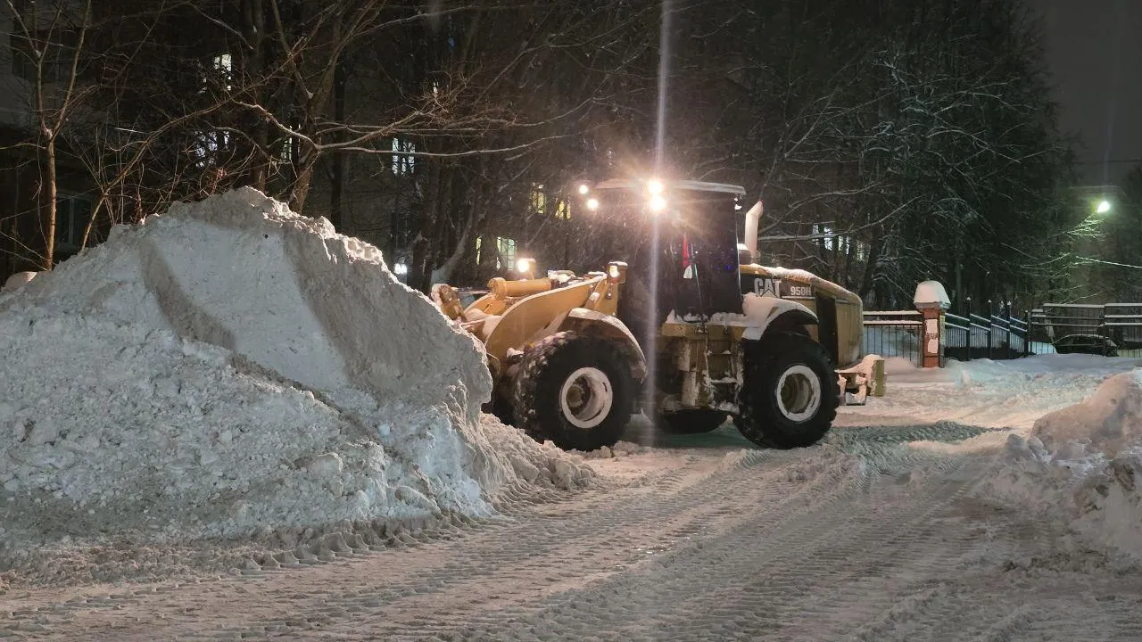 После обильного снегопада коммунальщики и дорожники работали в круглосуточном режиме. Чтобы расчистить проезды и тротуары, задействовали бригаду рабочих, фронтальный погрузчик и два самосвала.