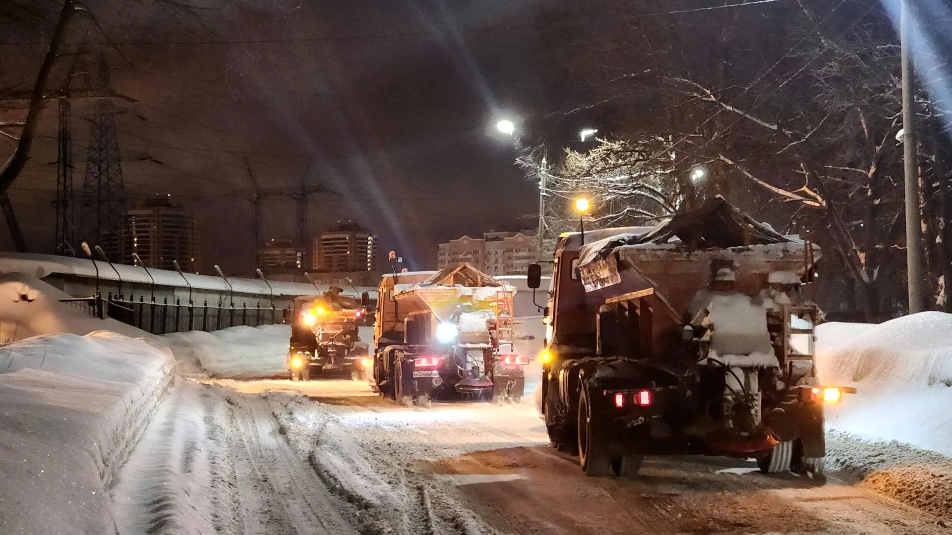 В Реутове коммунальщики ночью расчищают дороги от снегопада